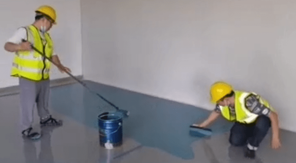 • 地平漆施工第二步:对地坪表面喷涂环氧封闭底涂料